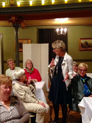 Frau Maaß kommt aus Quickborn und begann ursprünglich ihre Laufbahn mit dem Studium von Germanistik, Politik und Philosophie, arbeitet als freie Journalistin und tritt seit 2013 mit ihren Soloprogrammen auf. Mit viel Charme, selbstironisch und locker brachte sie die Anwesenden mit den bittersüßen Gedanken einer Frau über 50 zum Lachen und auch zum Nachdenken. Sie erzählte von von Treuepunkten, die sie doch in mehr als 26 Ehejahren erworben hätte und nirgends einlösen könnte, von den besonders „lieben“ Freundinnen Miesepetra oder von der Chaos –Susanne und natürlich auch von den kleinen Problemchen in einer Ehe, die mit dem Älterwerden auftauchen können! Es war ein reiner „Mädelsabend“ und in der Situationskomik erkannte sich die eine oder andere Frau wieder! Auf jeden Fall war es ein sehr vergnüglicher Abend, an dem viel gelacht wurde.