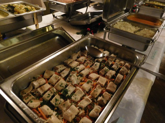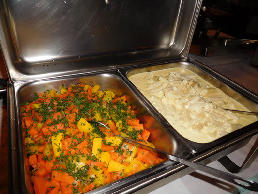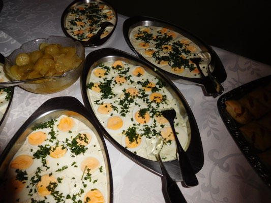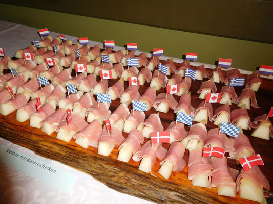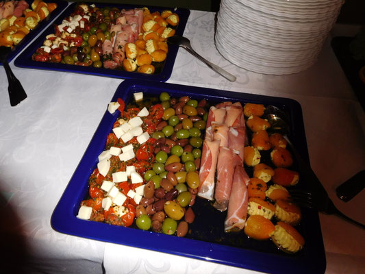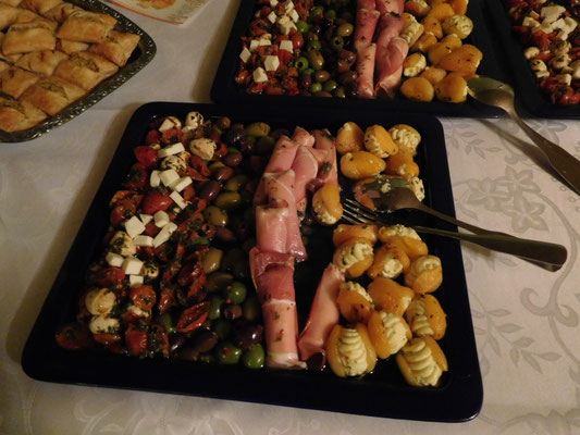 Frau Aschinger eröffnete das umfangreiche Büfett und spendierte ein Glas Rose- oder Rotwein sowie ein Marzipanherz für alle Gäste.
