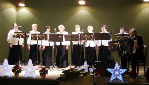Der deutsch-russische Frauenchor „Träume“ war mit acht Sängerinnen und dem Chorleiter Herrn Wladimir Strauch erschienen. Sie begannen mit dem Ave Maria und es folgten Lieder aus ganz Europa in